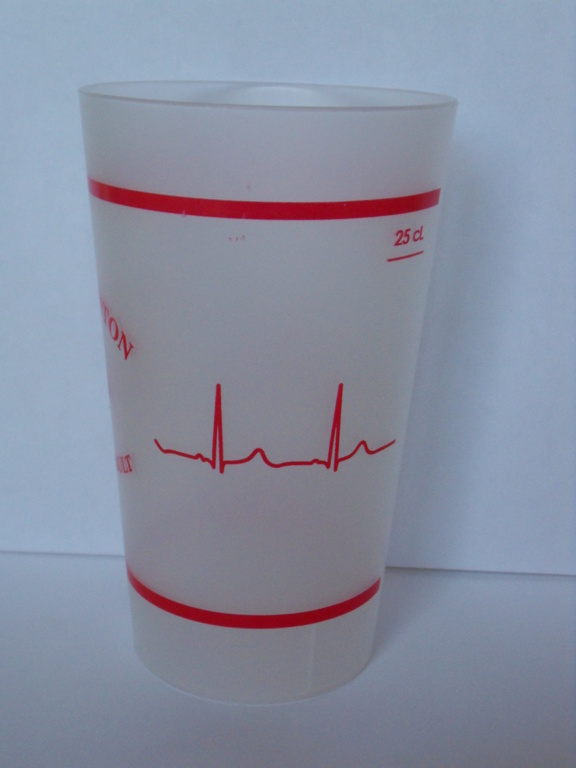 GOBELETS REUTILISABLES, personnalisés au logo du club avec un motif ligne de vie rouge